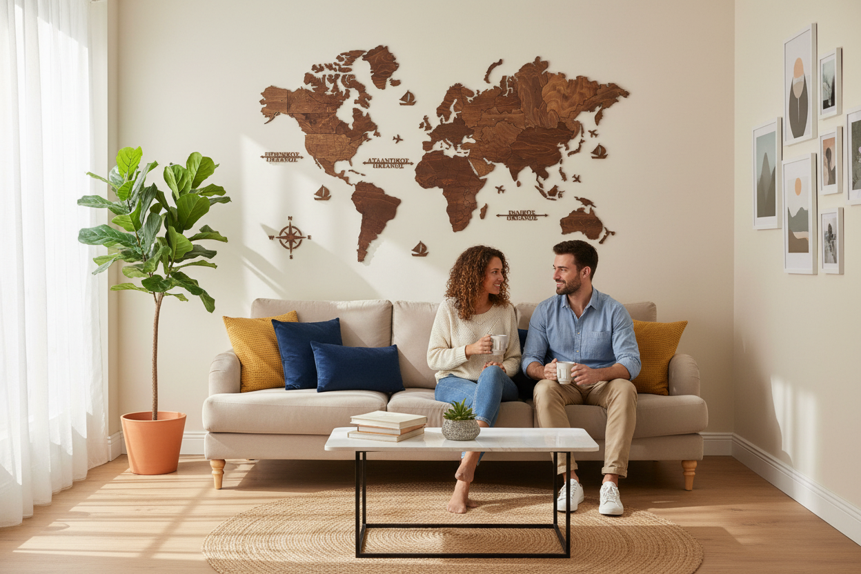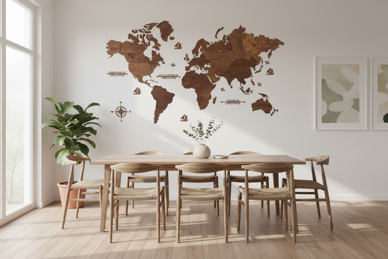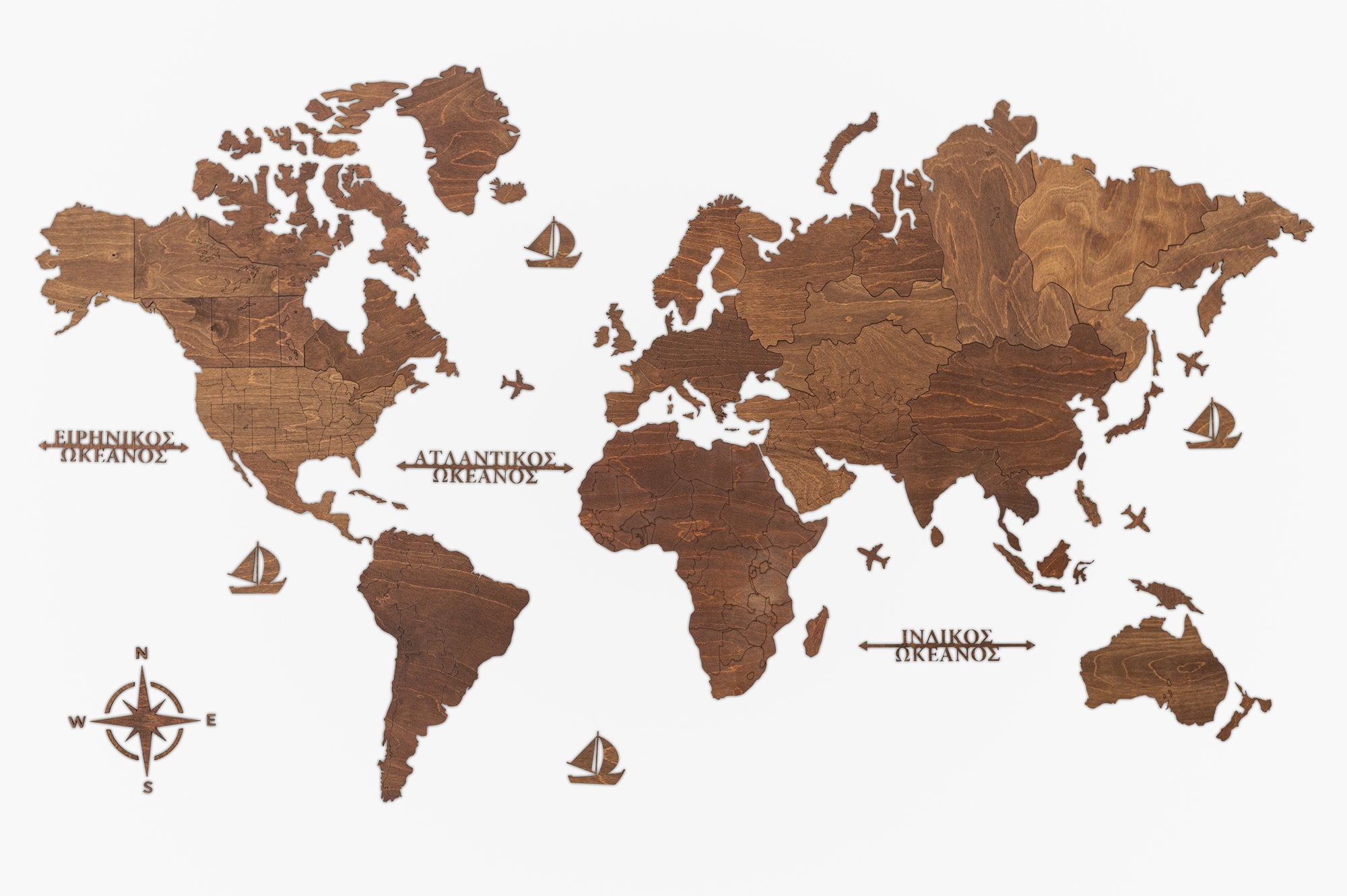 Ξύλινος παγκόσμιος χάρτης τοίχου
