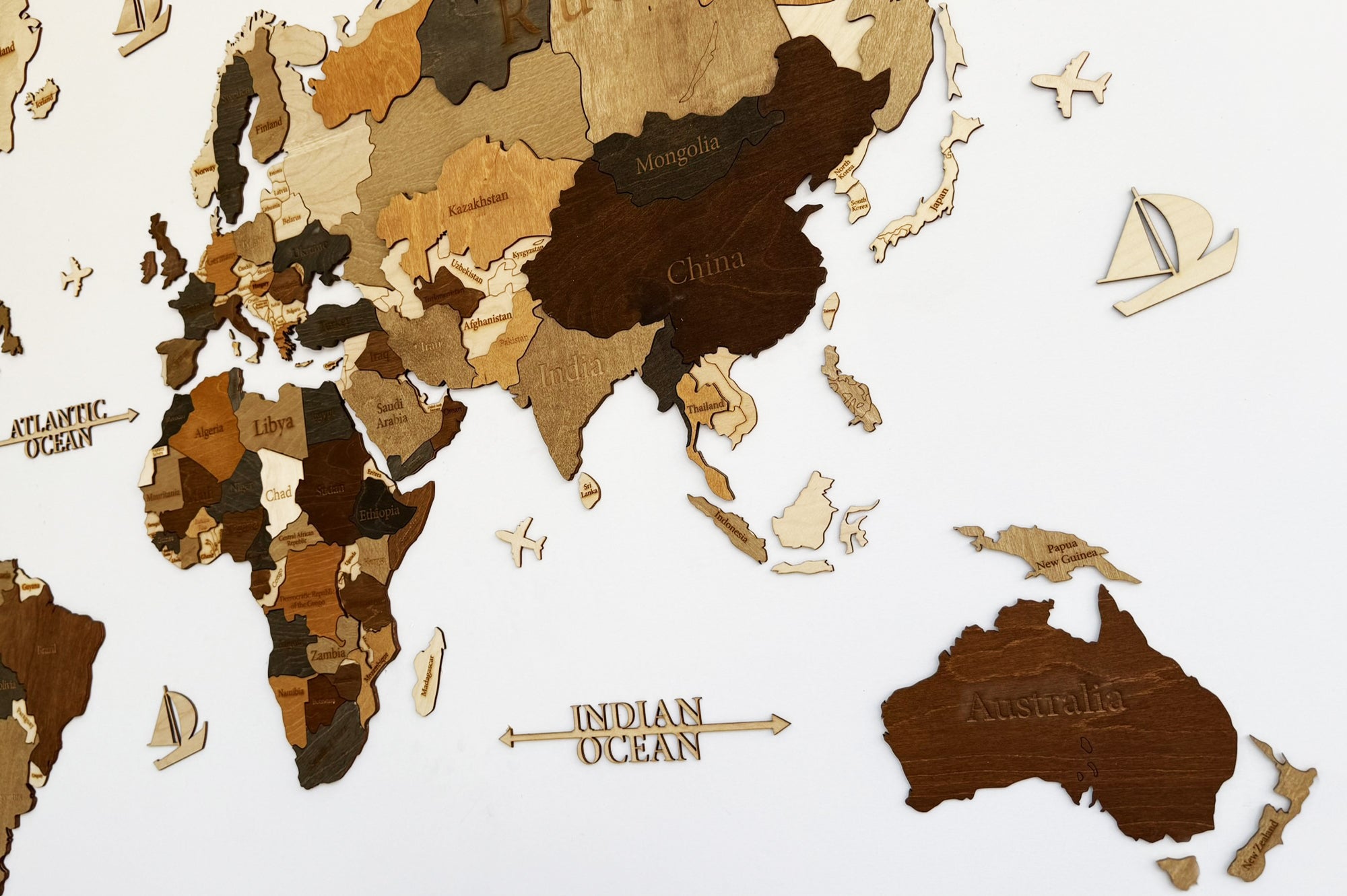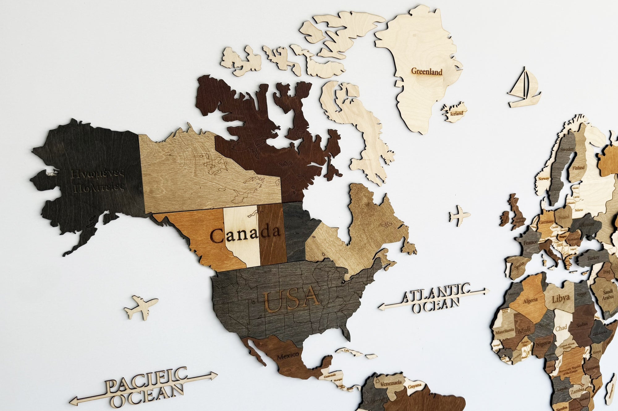 ΝΕΟΣ Ξύλινος τρισδιάστατος παγκόσμιος χάρτης τοίχου