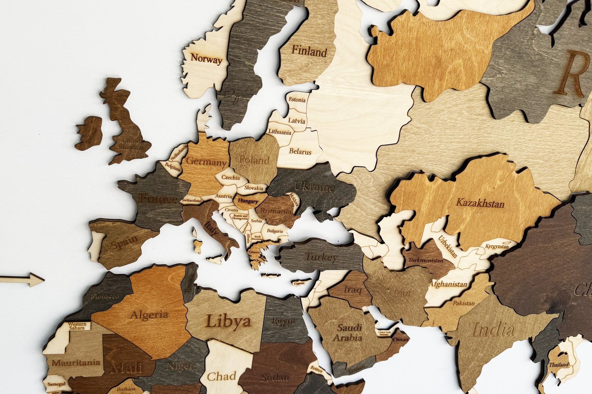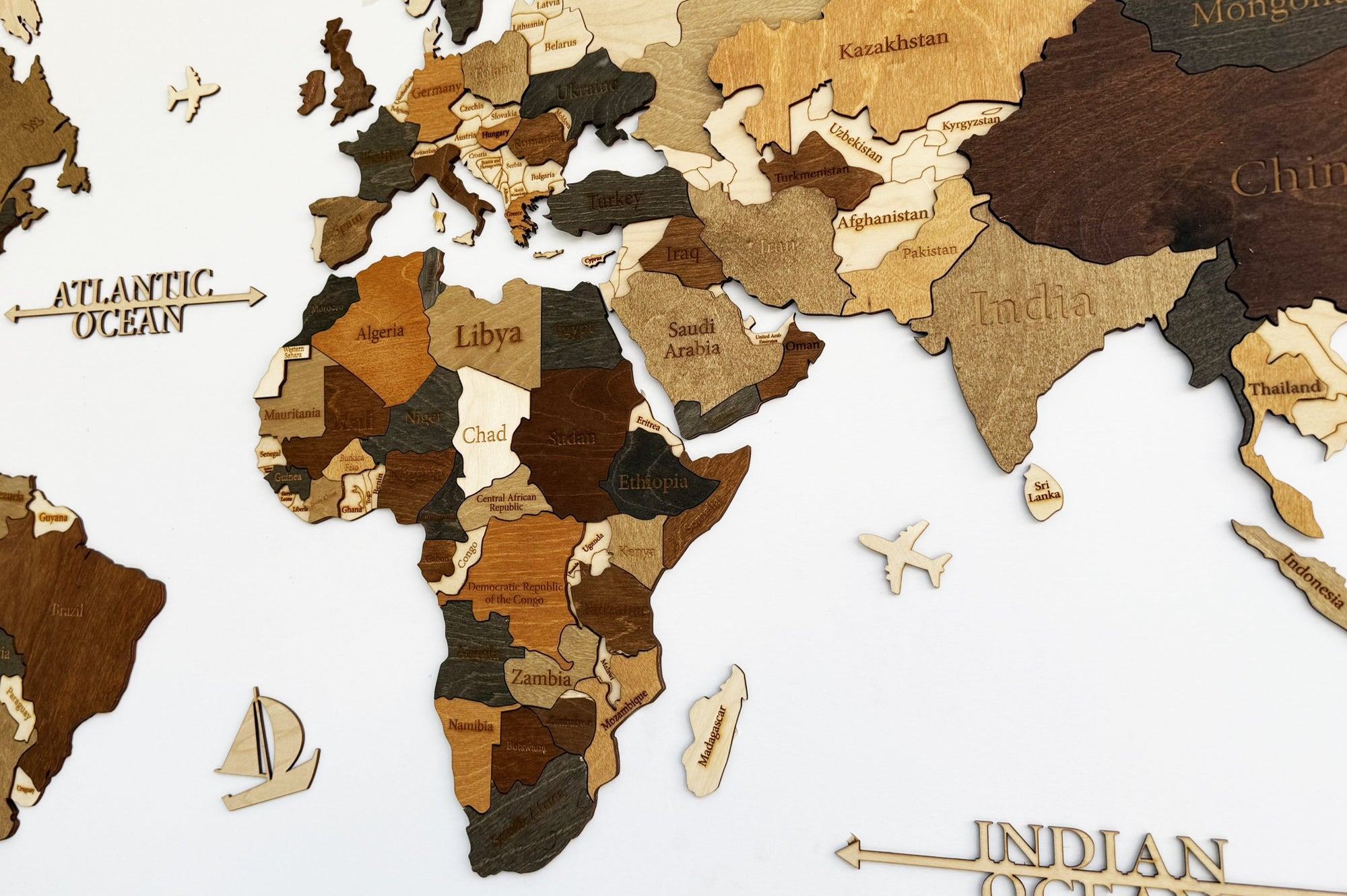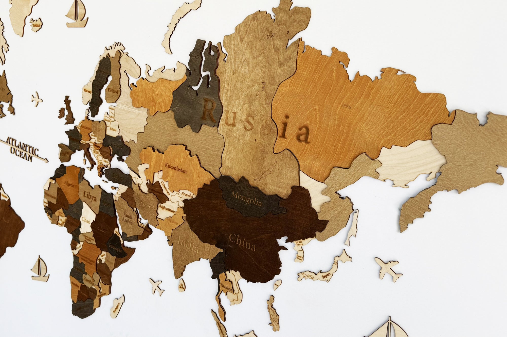 Το πρώτο επίπεδο αποτελείται από 45 τεμάχια ενώ το δεύτερο επίπεδο από 86 επικολλημένες χώρες, σε διαφορετικούς χρωματισμούς, κάτι που κάνει τον χάρτη πραγματικά εντυπωσιακό.